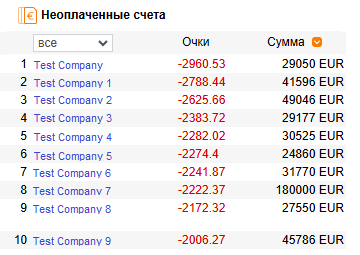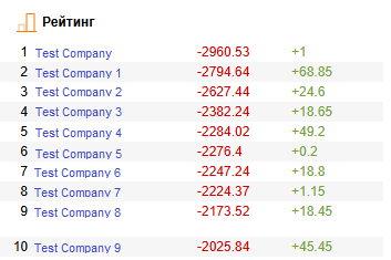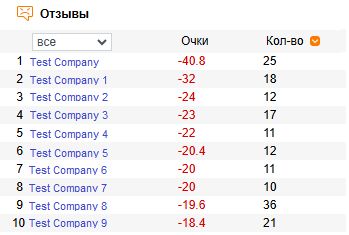 В ленте событий отображается 3 антирейтинга Активных/Неактивных компаний (10 в каждом списке):