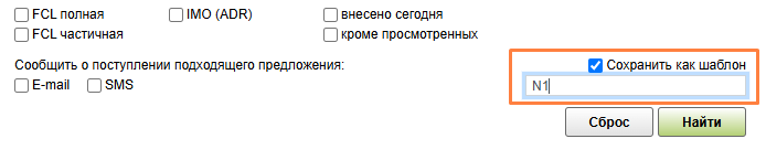 Шаблон. Для того чтобы сократить время по заполнению параметров поиска, вы можете создать шаблон. Для этого в режиме поиска выберите Сохранить как шаблон, укажите его название и нажмите Найти.