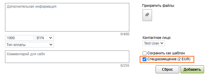 6. Спецразмещение. Чтобы ваше предложение отображалось вверху таблицы на период срока действия, выделялось среди остальных предложений, выберите такую услугу, как Спецразмещение. Услуга платная.
