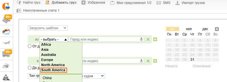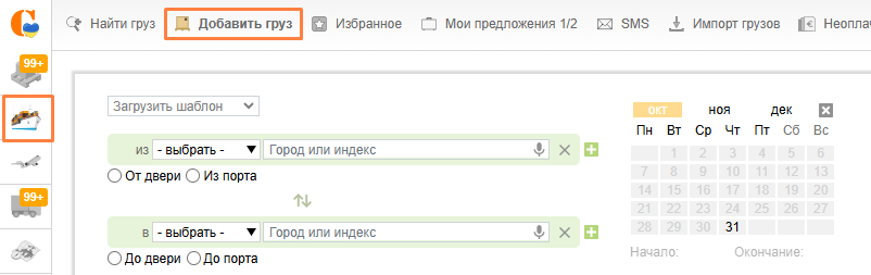 2. Дата загрузки/разгрузки. Дату загрузки/разгрузки можно указывать на 3 месяца вперед.