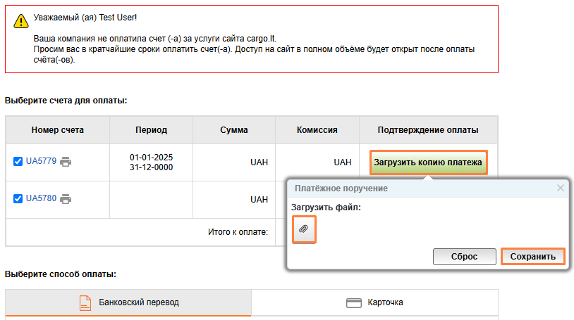 Загрузите платежное поручение. Для этого в открывшемся окне нажмите загрузить в ячейке Платежное поручение.