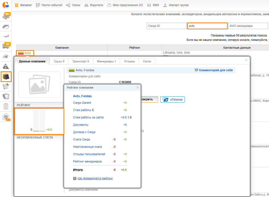 Чтобы узнать рейтинг и отзывы о своей компании, найдите компанию в разделе Каталог и перейдите в профиль компании, нажав на ее название.