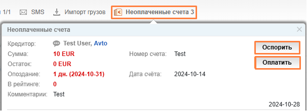 Чтобы посмотреть текущие неоплаченные счета вашей компании, перейдите в подраздел Неоплаченные счета в меню сайта.