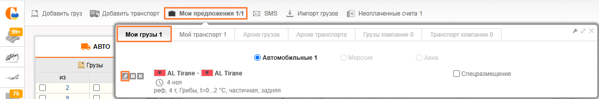 Чтоб отредактировать предложения, зайдите в подраздел Мои предложения и возле необходимого нажмите на иконку Редактировать.