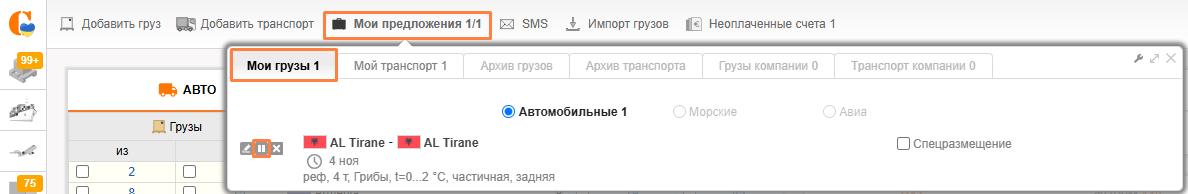 Чтобы приостановить публикацию предложения, зайдите в подраздел Мои предложения и возле необходимого нажмите на иконку Пауза.