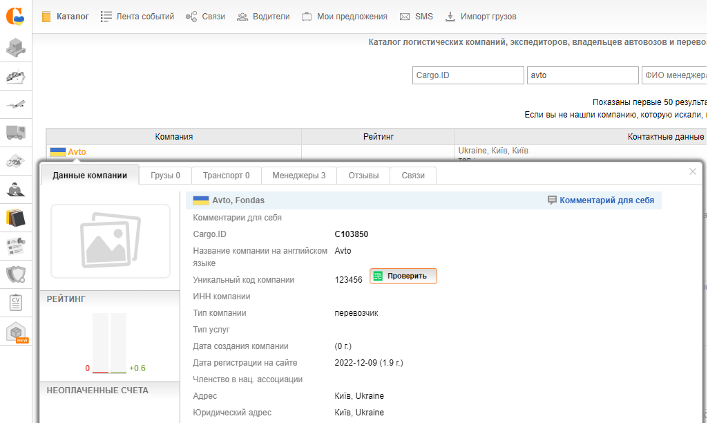 Для компаний из Латвии, Литвы, Белоруссии, Украины и Казахстана доступна кнопка Проверить, расположенная возле уникального кода компании в Данных компании. Нажав на нее, можно получить наиболее полную информацию о компании с помощью сервисов YouControl (Украина), Creditinfo (Литва), Firmas.lv (Латвия), LEGAT.BY (Казахстан, Белоруссия).