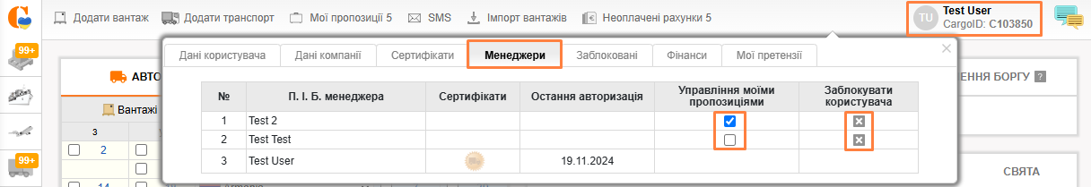 Зайдите в профиль пользователя, нажав на имя. Перейдите во вкладку Менеджеры и напротив необходимого нажмите на Заблокировать пользователя.