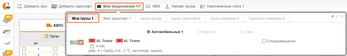 Чтоб удалить предложение, зайдите в подраздел Мои предложения и возле необходимого нажмите на иконку Удалить.