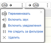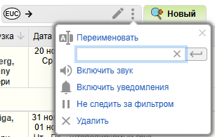 Чтобы переименовать вкладку в меню управления фильтром поиска нажмите на Переименовать и впишите название, после чего нажмите Enter.