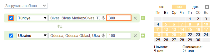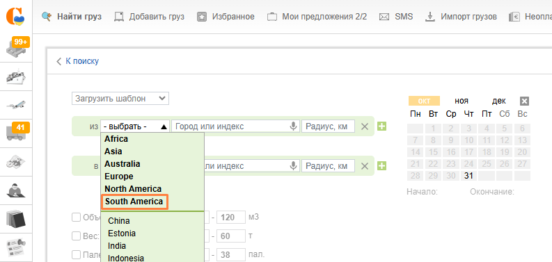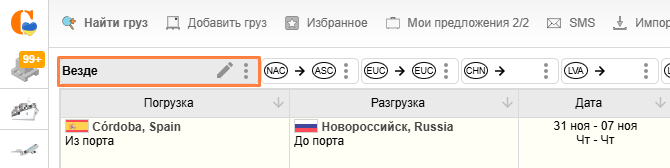 Тогда будут отображаться предложения только в пределах выбранной страны. Если галочка не выбрана, отобразятся предложения в указанном радиусе от пункта загрузки/разгрузки независимо от границ страны.