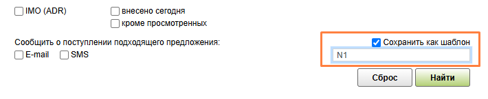 Шаблон. Для того чтобы сократить время по заполнению параметров поиска, вы можете создать шаблон. Для этого в режиме поиска выберите Сохранить как шаблон, укажите его название и нажмите Найти.